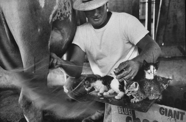 Кроме того, у фермера Арча Бадерчера было много котят и он приучал их к парному молоку сызмальства: