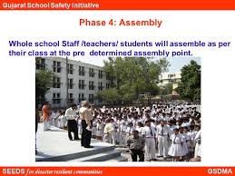 Собираются на улице у знака "Аварийный пункт сбора", где несколько отделов идут к своей цифре - их было цифр 10, наверное, сейчас уже не помню.
