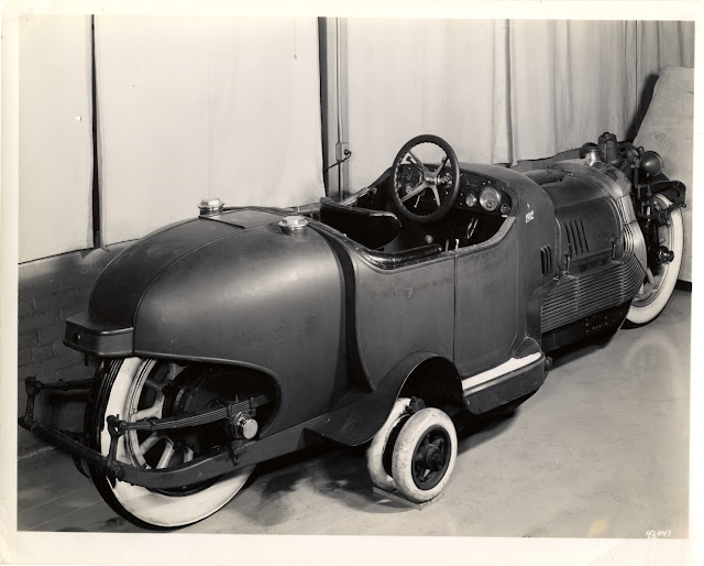 Мотоцикл весом 3200 фунтов со стабилизирующими колесами, двигателем V8 и медными трубами, достаточными для того, чтобы снабдить каждого деревенского жителя Озарка змеевиком для самогонного аппарата, Scripps-Booth Bi-Autogo был довольно глупым экспериментом Джеймса Скриппса-Бута, наследника издательства Scripps и автоинженера-самоучки - или, лучше сказать, недоучки. Это было по сути двухколесное транспортное средством, несущее значительный вес на деревянных колесах диаметром 37 дюймов. На малой скорости водитель мог опускать маленькие стабилизирующие колеса, чтобы автомобиль не перевернулся. Эта конструктивная особенность не явилась следствие задней мысли; очевидно, что это была сумасшедшая идея, даже в 1913 году. Единственным отличительным признаком Bi-Autogo было то, что он явился первым в истории автомобилем с двигателем V8, когда-либо построенным в Детройте.