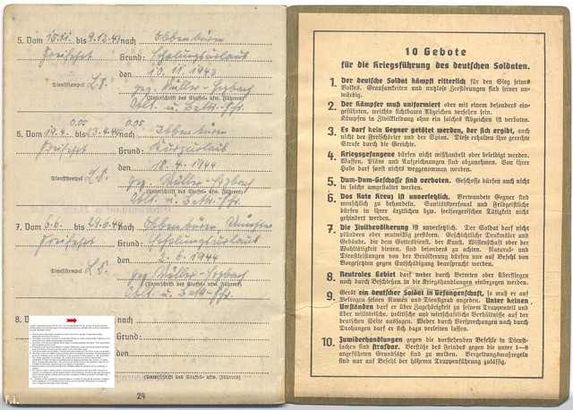 Другие дошедшие до нас инструкции Вермахта, например, «10 заповедей немецкого солдата», имеют принципиально иное содержание и призывают воевать «по-рыцарски», без «проявлений зверства».