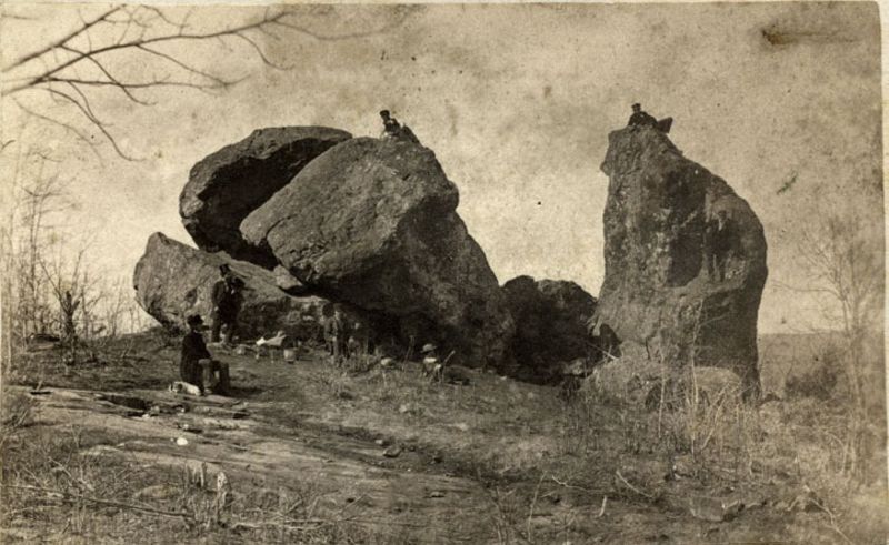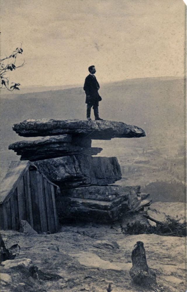 | A gent in civilian attire enjoys the view from Umbrella Rock on Lookout Mountain at Chattanooga, Tennessee |