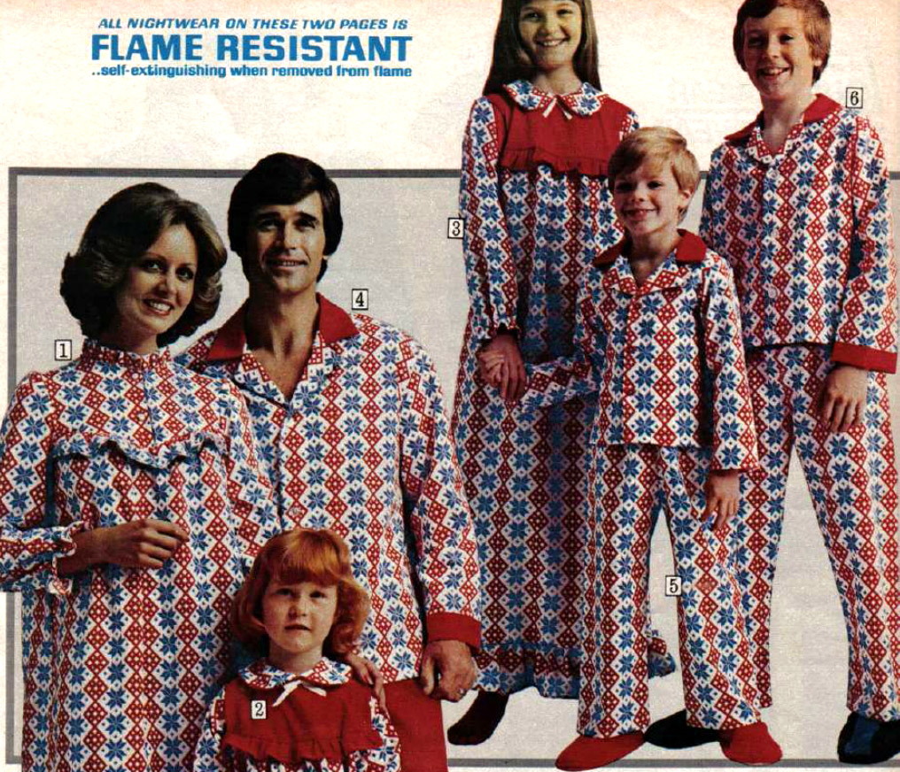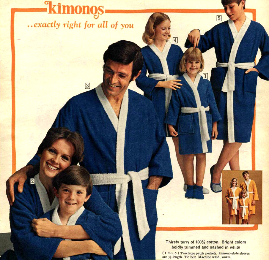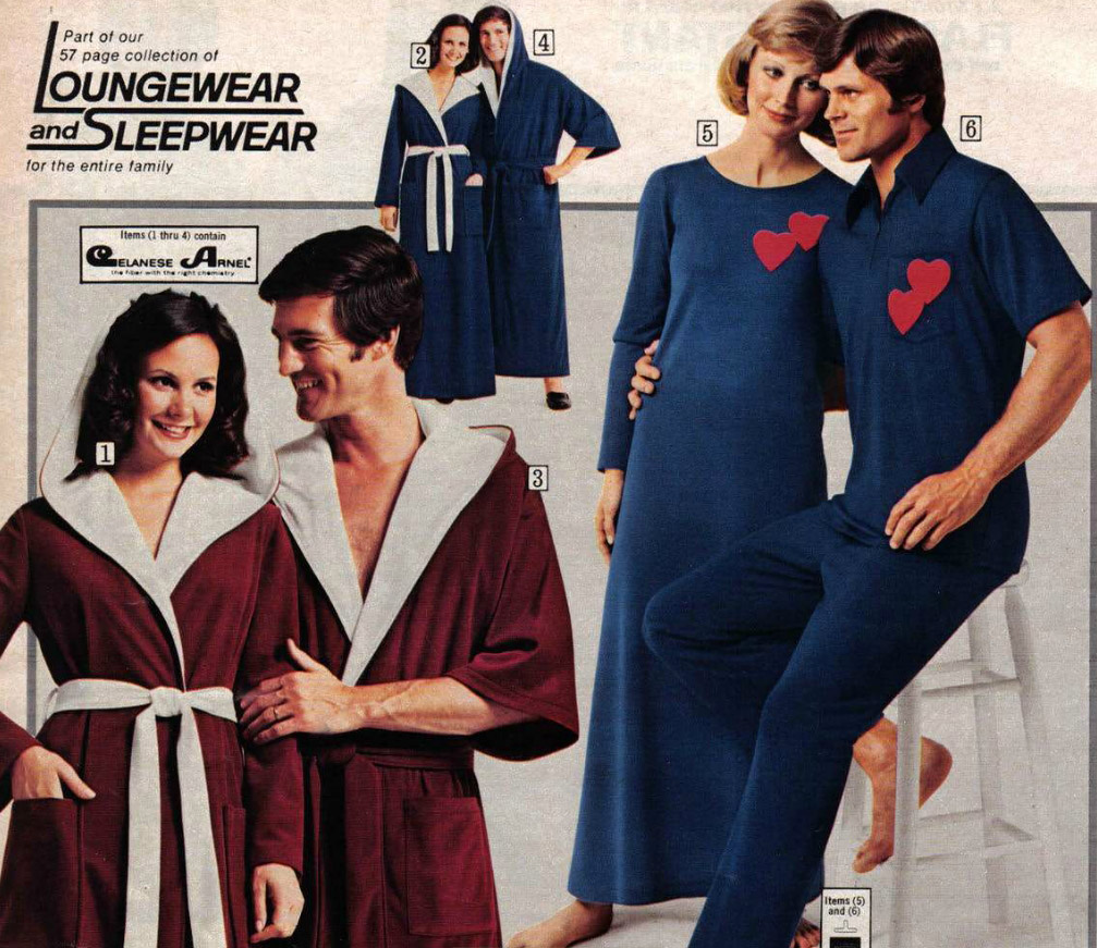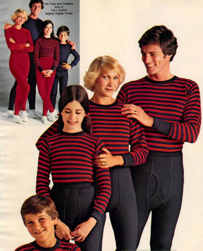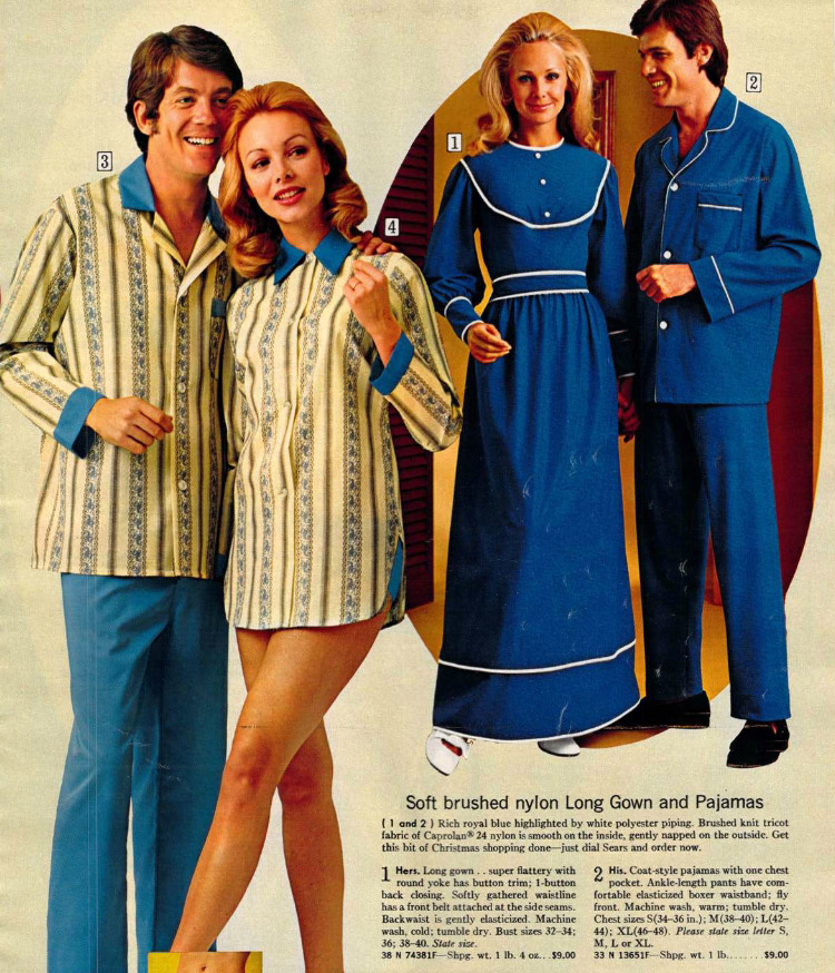 Сирс (все магазины этого бренда закрывались в Канаде (В Манитобе и Квебеке) на моих глазах и Джей Си Пенни предлагали этот праздничный наряд в своих Рождественских каталогах год за годом на протяжении более десяти лет в 1970-х годах.