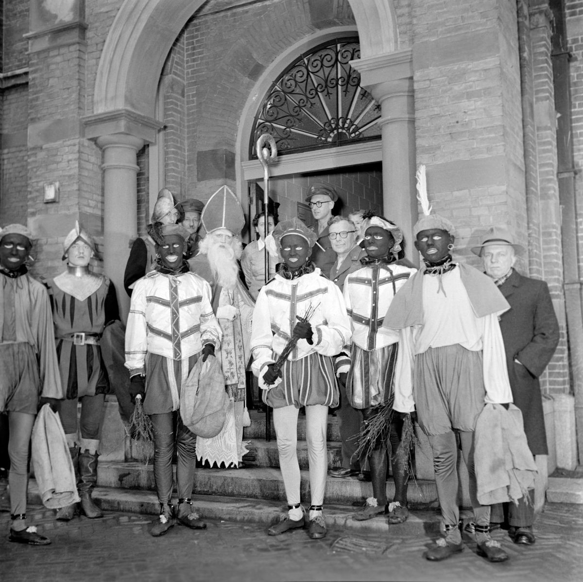 Синтерклаас, одетый в свои красные одежды, ведет процессию через город, верхом на белом коне. В каждом городе Нидерландов есть несколько помощников Синтерклааса, одетых так же, как Синтерклаас и Пиеты, которые помогают раздавать подарки.