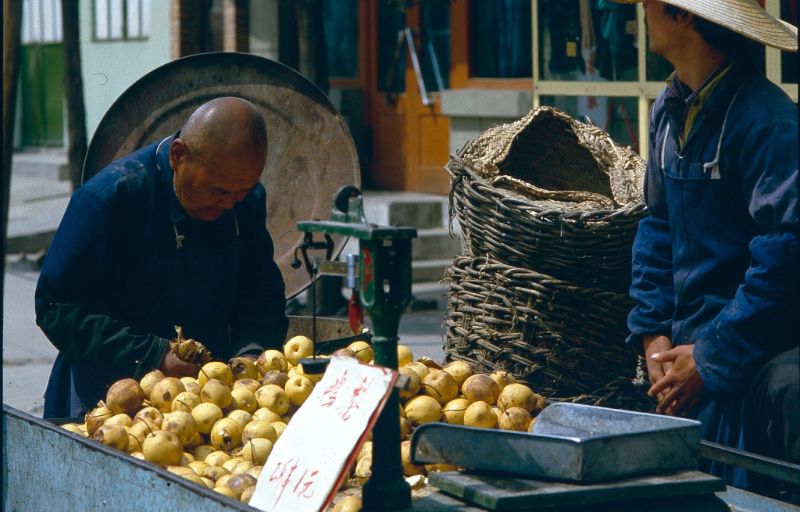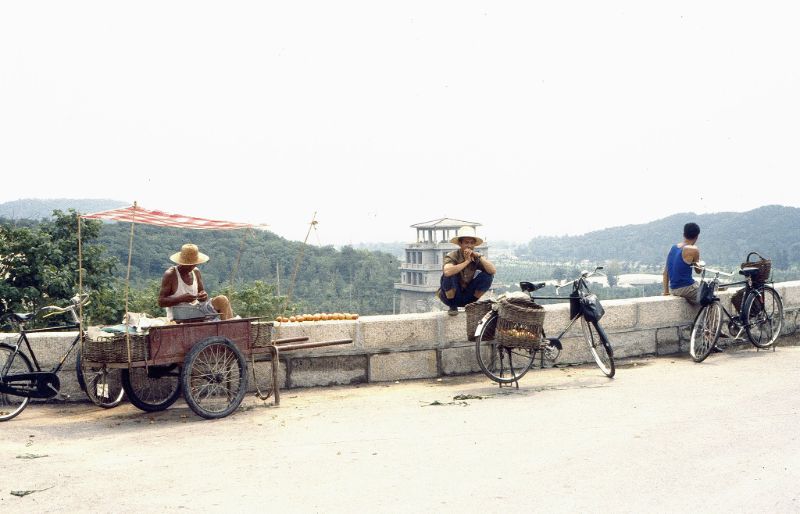 | Fruit vendors near dam, probably the dam on the trip to the Ming tombs and Great Wall at Badaling |