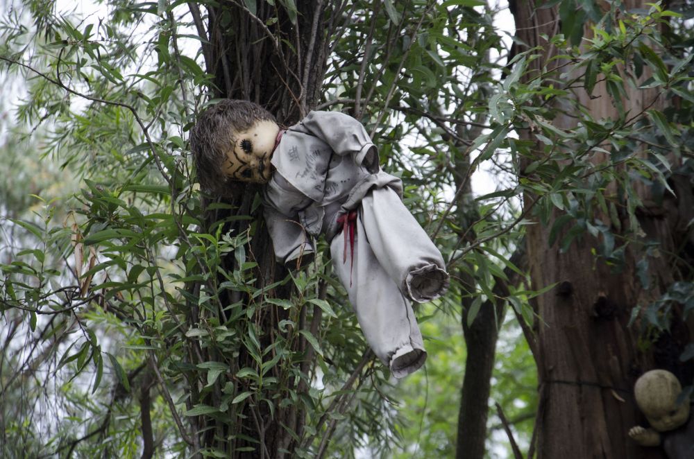Добраться до острова-долгая и трудная задача, но прогулка среди жутких кукол-это опыт, не похожий ни на какой другой. Большинство, если не все, этих кукол были отвергнуты их предыдущими владельцами по разным причинам. Отрубленные конечности и лишенные тела головы висят бок о бок с целыми, выгоревшими на солнце куклами. Некоторые покрыты плесенью, в то время как у других отсутствуют почти все их искусственные волосы. Пауки и насекомые поселились в полых частях большинства кукол.
