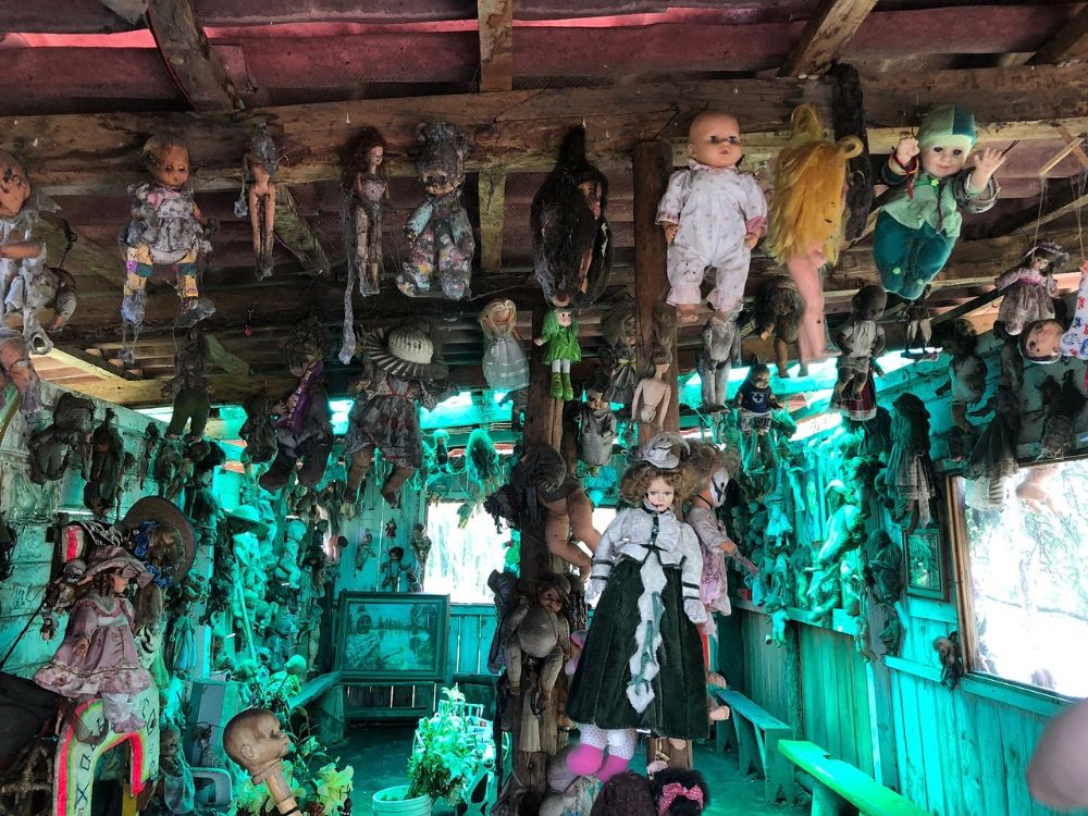 Добраться до острова-долгая и трудная задача, но прогулка среди жутких кукол-это опыт, не похожий ни на какой другой. Большинство, если не все, этих кукол были отвергнуты их предыдущими владельцами по разным причинам. Отрубленные конечности и лишенные тела головы висят бок о бок с целыми, выгоревшими на солнце куклами. Некоторые покрыты плесенью, в то время как у других отсутствуют почти все их искусственные волосы. Пауки и насекомые поселились в полых частях большинства кукол.