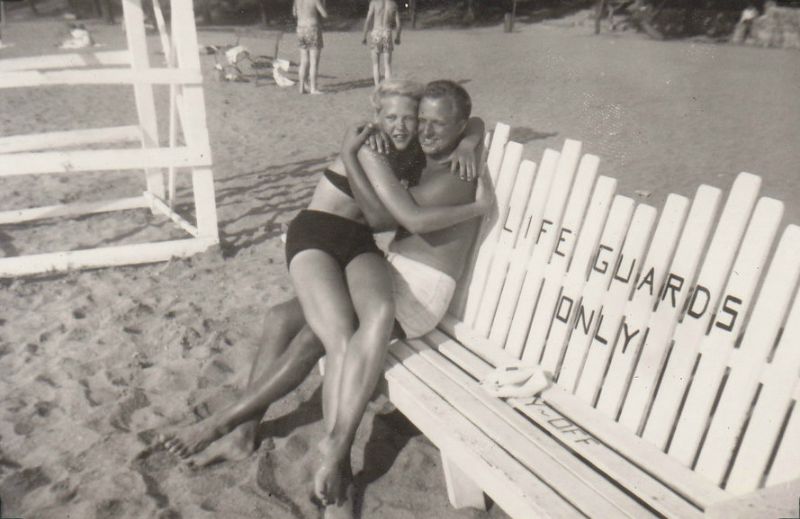 Обратите внимание - спасательные вышки уже тогда были в Америке непременным атрибутом каждого пляжа.