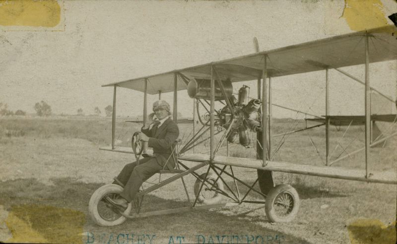 Oscar A. Solbrig in his Curtiss pusher biplane, Davenport, Iowa, circa 1914 |