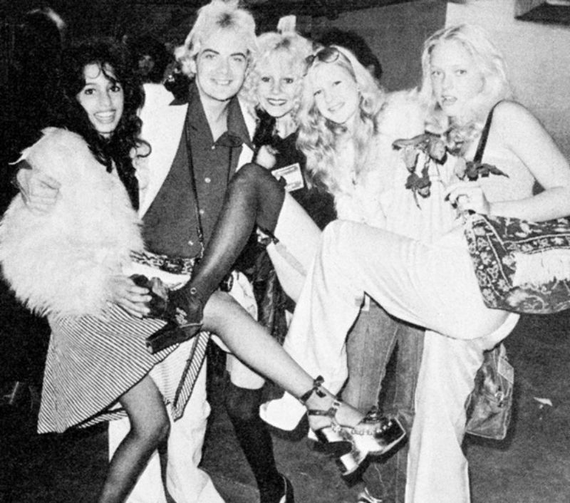| Queenie Glam and Sabel Starr on Led Zeppelin's limo outside Rodney Bingenheime's English Disco, June 1972. |