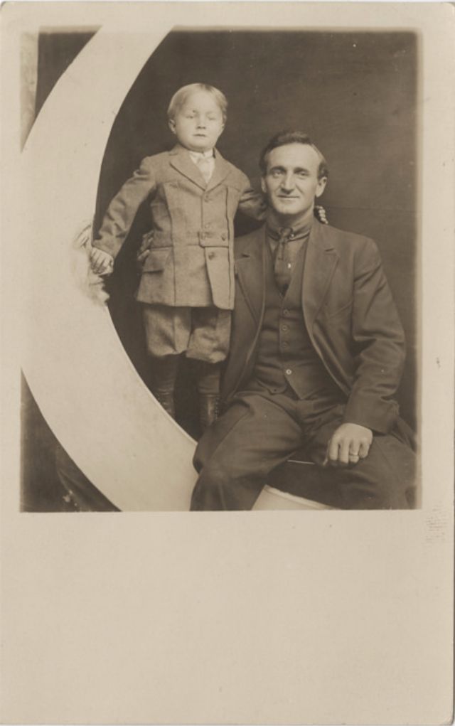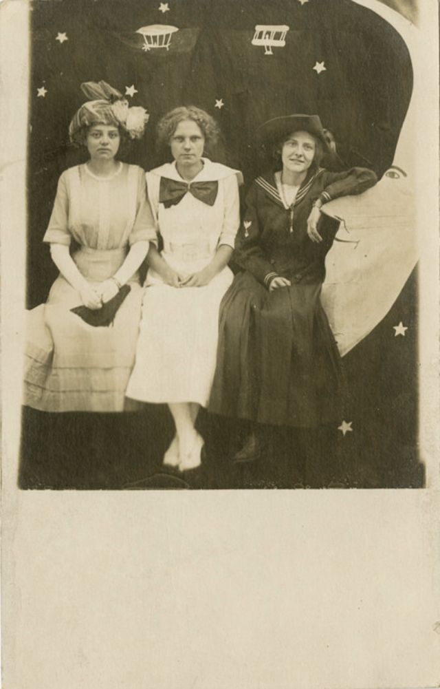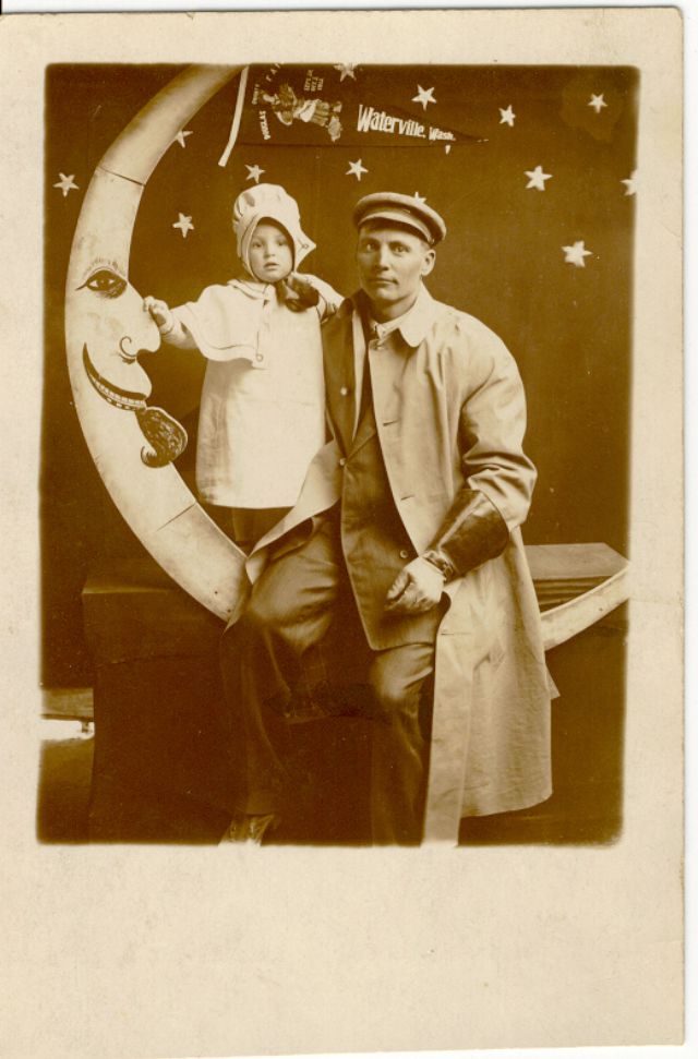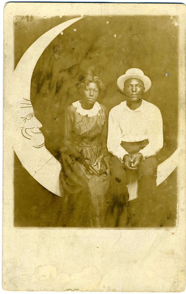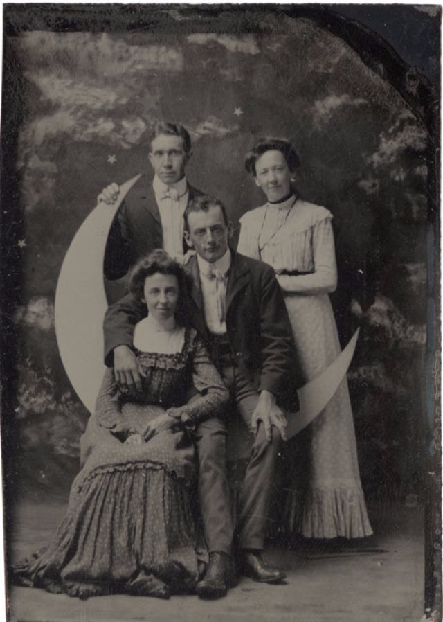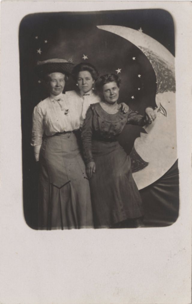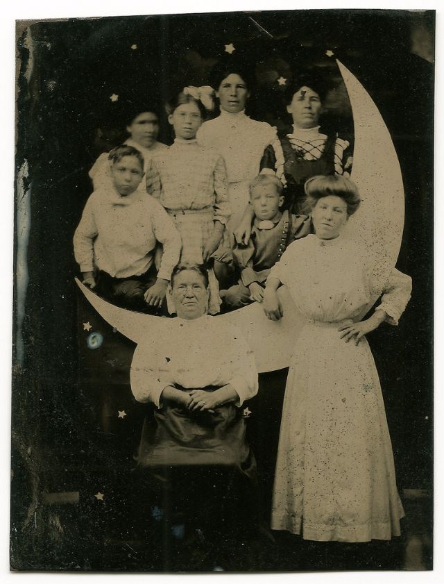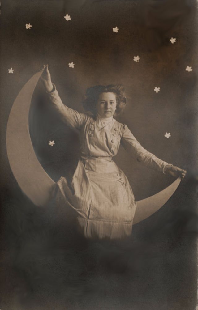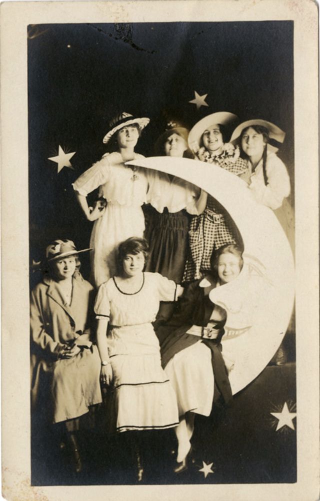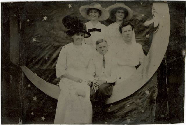Часто на ярмарках, вечеринках и карнавалах люди сидели на полумесяце улыбающейся "бумажной луны", как бы возносясь к звездам. Фотографический феномен начала 20-го века поразил воображение мира до фотошопа и подарил многим незабываемые образы прекрасных времен.